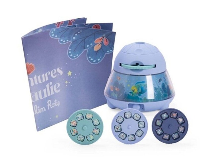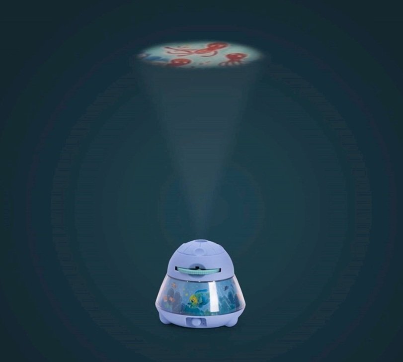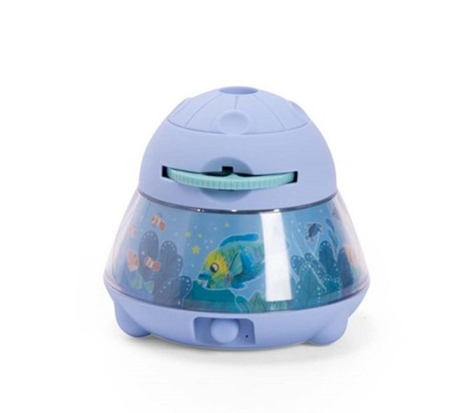 Il proiettore da tavolo di Moulin Roty ha 24 immagini di animali e del loro ambiente che vengono proiettate sul soffitto per stimolare l’immaginazione dei bambini e creare un ambiente rilassante trasformando la stanza in uno spazio magico.