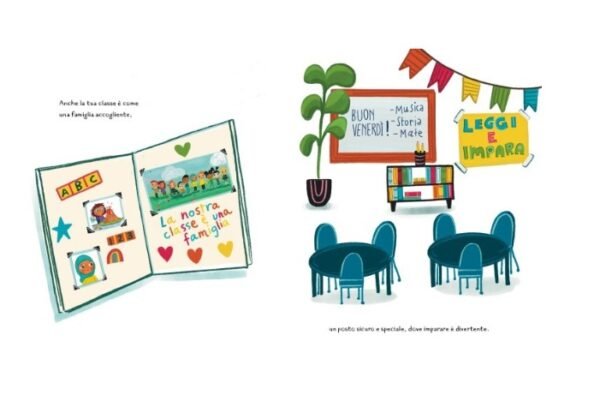 Un albo illustrato che celebra la scuola come una grande famiglia, dove ogni bambino trova il suo posto e ogni adulto ha un ruolo speciale. Un messaggio positivo di inclusione e appartenenza, perfetto per l’inizio dell’anno scolastico.