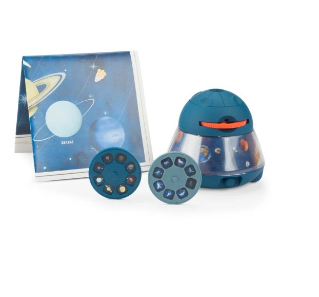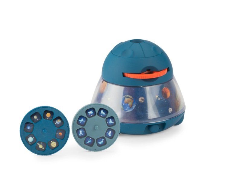 Proiettore spaziale grande con immagini di alta qualità: proietta pianeti, costellazioni e comete su parete o soffitto. Con 3 dischi da 8 diapositive ciascuno, i bambini possono esplorare le meraviglie dello spazio. Luce notturna incorporata che illumina un paesaggio incantevole e si spegne automaticamente dopo 15 minuti.